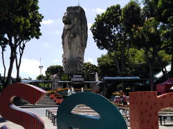 巨大なマーライオンの間近を通過するのも興味深い光景である。