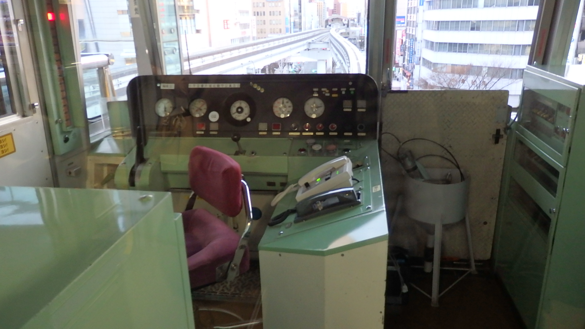 | である。図3が運転席の様子で無人運転されているようである。図4が高架部分の周りの |