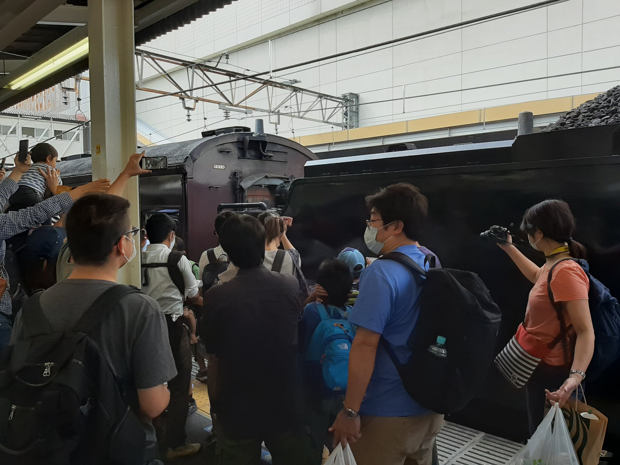 | は、高崎駅の2番線ホームは、多くのファンが集まっていた(図3)。牽引する蒸気機関 |