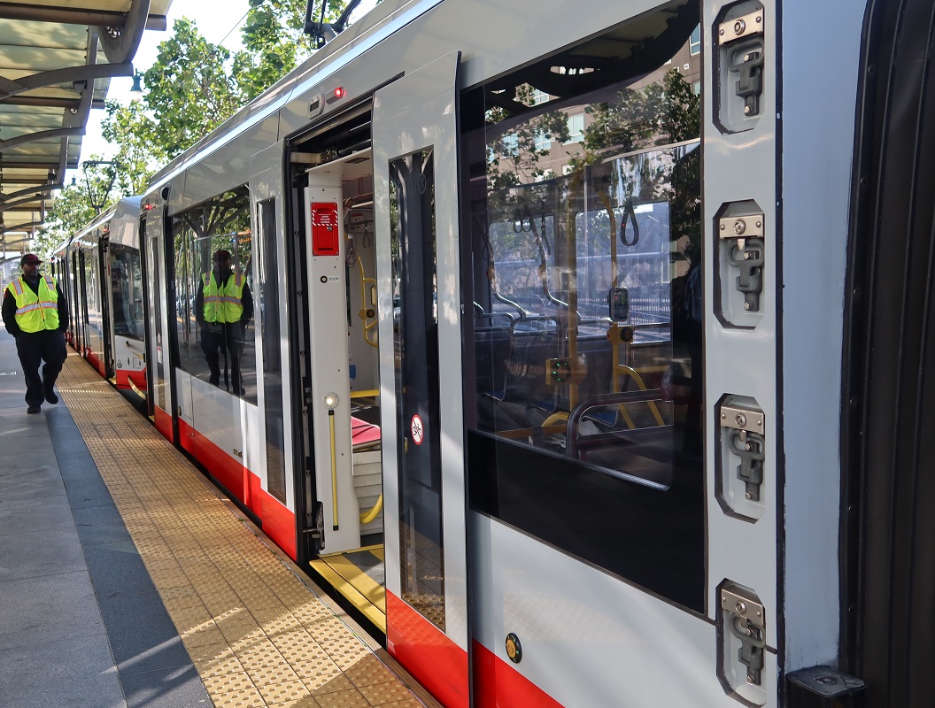 サンフランシスコ市内を走る電車、多数の路線があり、映像はストリートカーのようである。