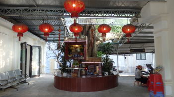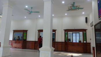 | 車出発駅であるロンビエン駅の入り口であり、図3は駅構内の切符売り場であり、閑散としている。 |