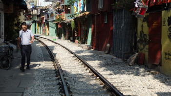 | 元の混雑に戻るという状況が撮影され面白い映像となっていると思う。なお、ハノイ駅付近の線路 |