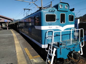 | 53. 電気機関車108号に牽引される秩父鉄道貨物専用列車(長瀞駅にて、2019.11.16) |