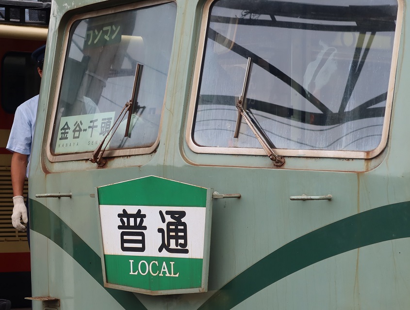 図1が電車内の2-1の様子でクロスシートとなっている。図2はヘッド部分であり、普通の表示と行き先は小さく「金谷―千頭」と表示されている。図3のELは、大井川鐵道本線電化時(昭和24年、1949年)から在籍し、70年以上も活躍するSLにも劣らぬレトロな車両EL10形である。
