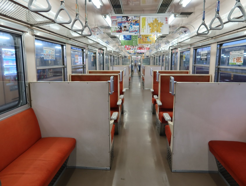 図1がラッピング車両である。図2が通常の修善寺行きの車両である。図3が車内の様子でクロスシートとなっていた。 |
