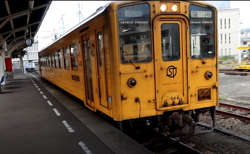 予土線にはトロッコ列車が土日に運行されている。しかし、土日以外は、1両のみの黄色の気動車として運行されている(図3)。
