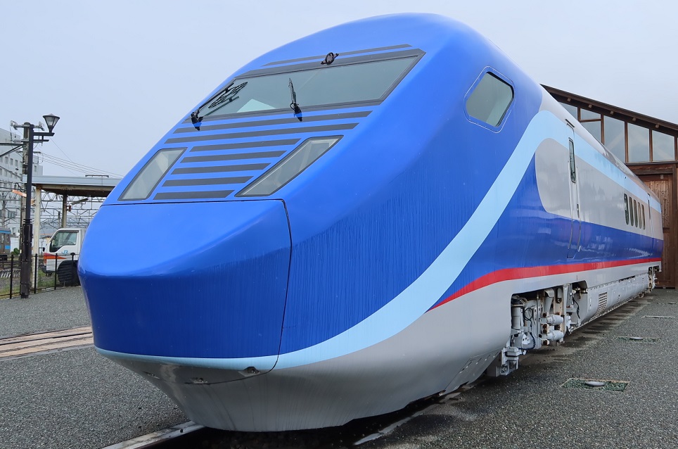 FGTは新幹線の標準軌道1455mmと在来線の狭軌1067mmに車輪の左右間隔を自動的に変換して直通運転を可能とするものである。これがFTG第2次試験車である。