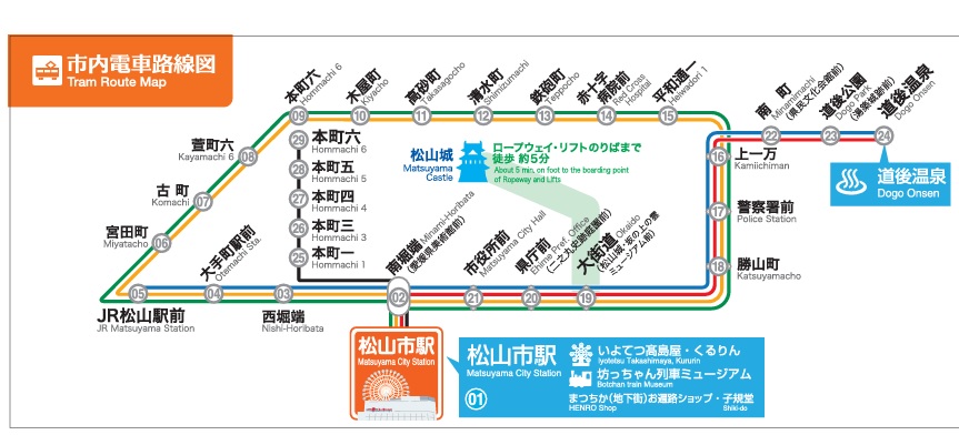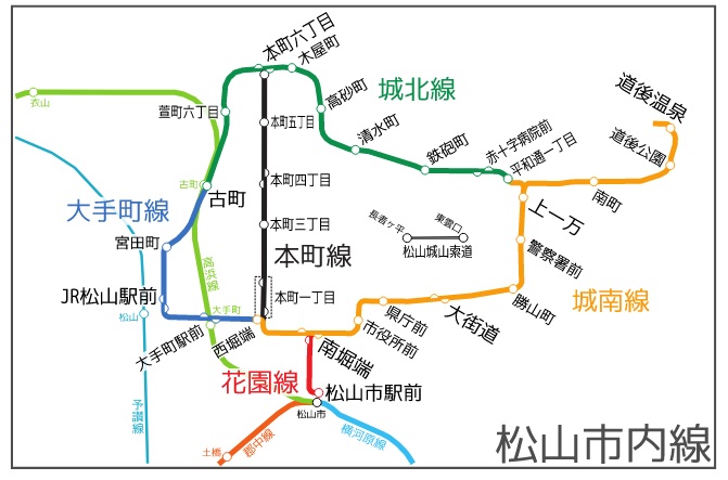 図1の路線図に示すように松山市内線は、城南線、花園線、城北線、大手町線となっている。