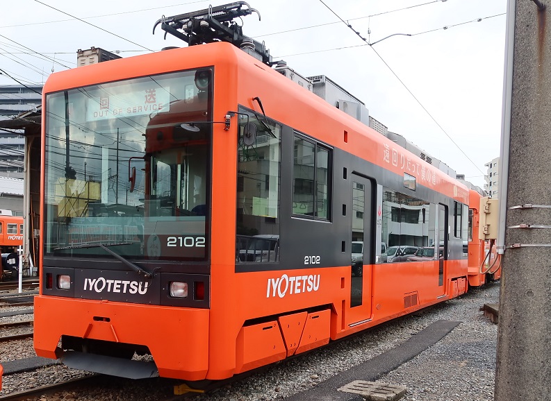 伊予鉄道には、大型の電車を使用する郊外電車と路面を走行する松山市内線があり、郊外電車については256番で詳しく紹介した。ここでは市内線について紹介する。