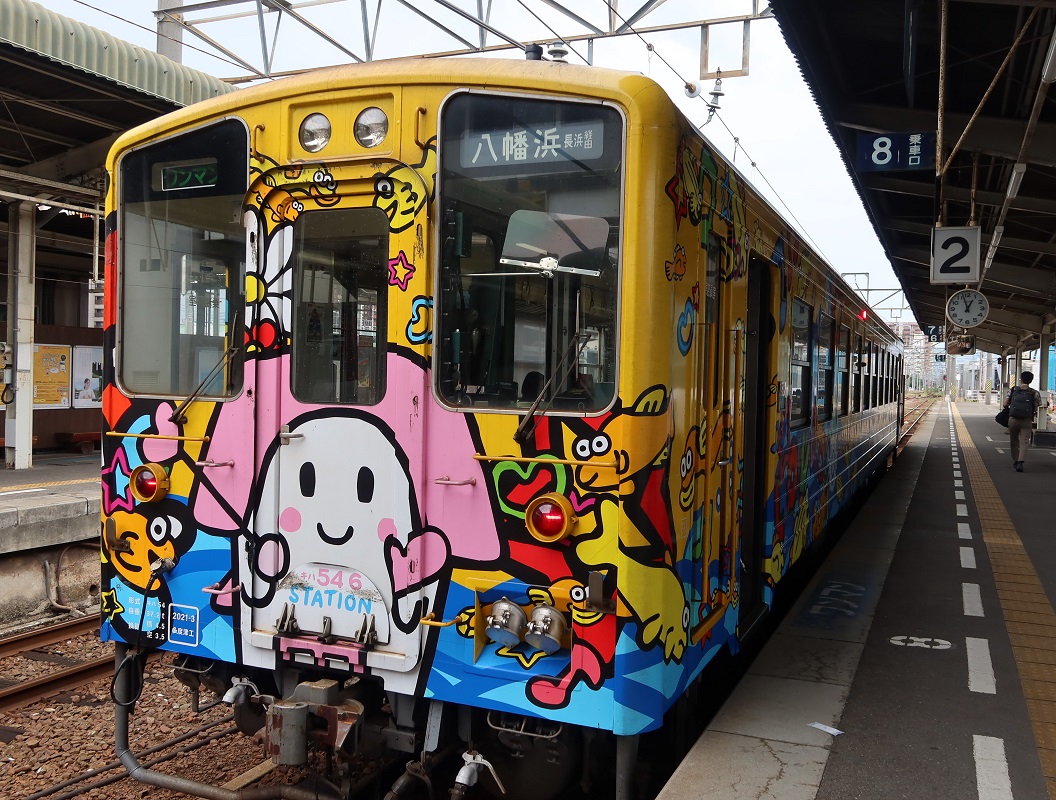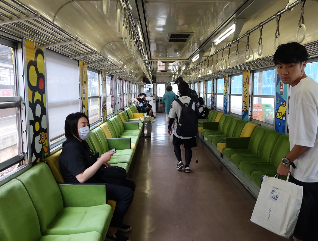 一方、乗車を間違わないようにするためであろうか、内子線にはことなるラッピングがなされている(図5)。