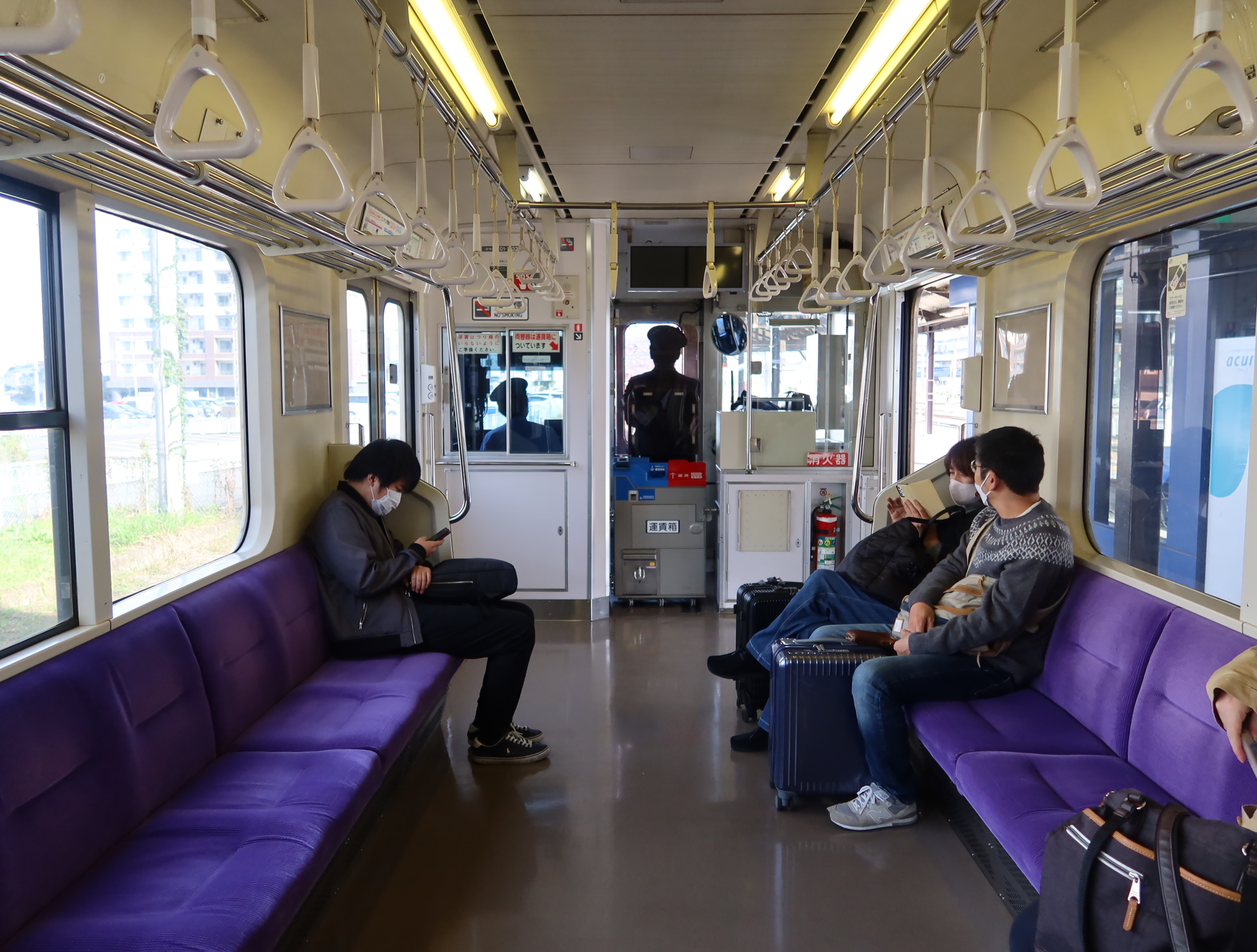 東北本線は、東京駅から岩手県の盛岡駅を結ぶJR東日本の鉄道路線である。もともとは、上野駅から大宮・宇都宮・郡山・福島・仙台・一関・盛岡・八戸を経由して、青森までの最長の営業キロを持つ路線であった。しかし1982年に東北新幹線の大宮駅 - 盛岡駅間が開業すると、長距離列車は新幹線経由での運行に移行し、並行する東北本線在来線列車はJR東日本から第三セクター会社(盛岡駅 - 目時駅間はIGRいわて銀河鉄道、目時駅 - 青森駅間は青い森鉄道)に経営が移管された。この結果、東北本線在来線は東京駅 - 盛岡駅間の全長535.3kmの路線となった。図1は一ノ関と盛岡間の在来線の列車であり、図2が車内の様子でロングシートとなっている。